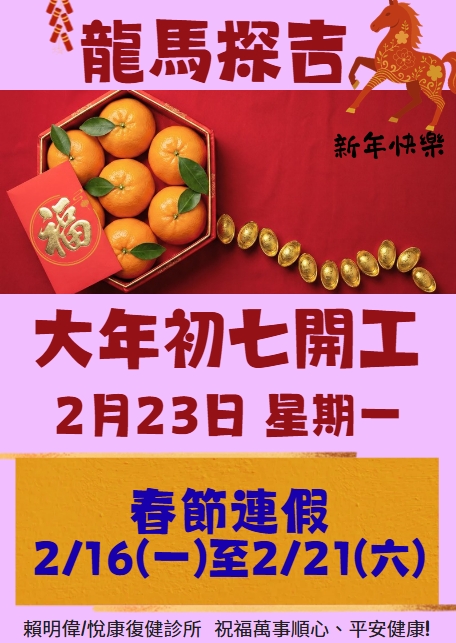 (復健治療不中斷,晚上請於8:45前)